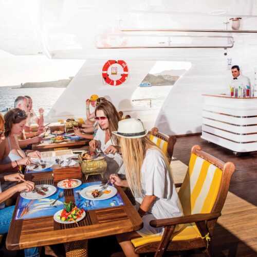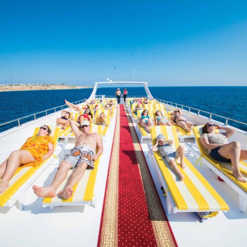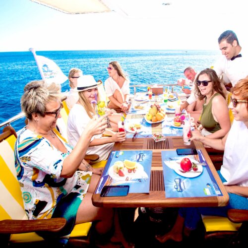 With a highly trained crew, impeccable hygiene standards, and premium service throughout the day, this cruise is perfect for guests seeking the ultimate Red Sea experience.