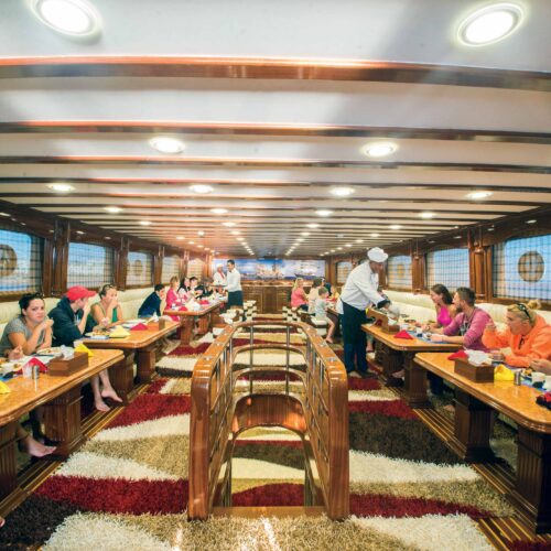 - Banquet-style meals prepared onboard with fresh, high-quality ingredients