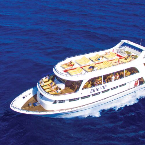 Step aboard the brand-new ELITE VIP Cruise and enjoy the pinnacle of luxury on the Red Sea. These stunning 4-deck yachts are designed for elegance and comfort, offering breathtaking ocean views from the spacious open sun deck, shaded mid-deck seating, and beautifully furnished, air-conditioned salons and dining areas.