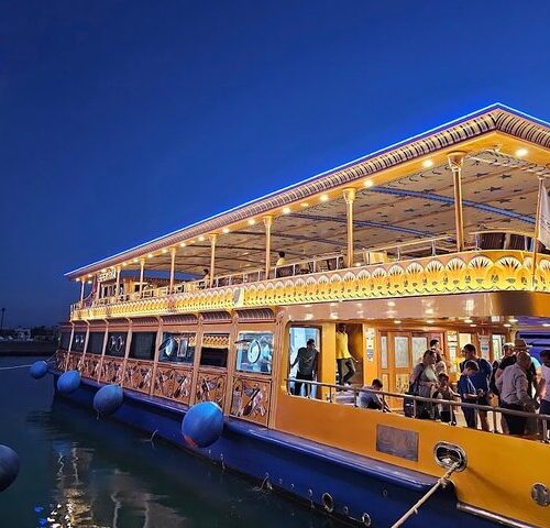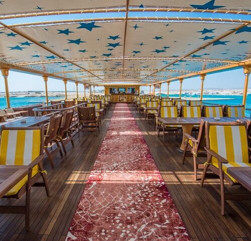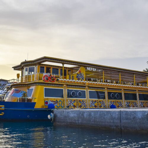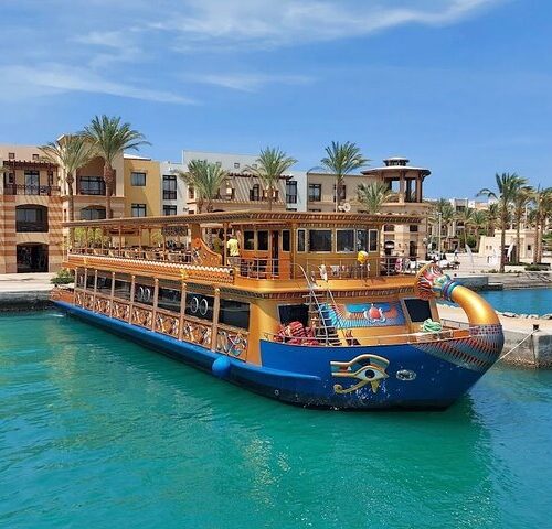 Step aboard a truly unique floating replica of Queen Nefertari’s tomb and dive into the wonders of the Red Sea on this unforgettable Makadi Bay snorkeling cruise. Designed to reflect the grandeur of the pharaohs, the vessel features lavish decorations and an underwater viewing platform, offering a one-of-a-kind combination of adventure, history, and relaxation.