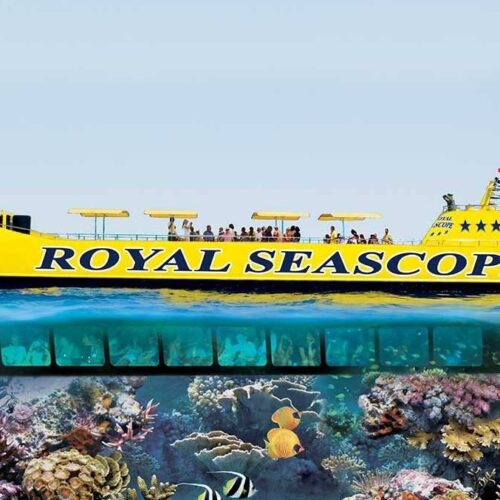 Experience the wonders of the Red Sea like never before on the Royal Seascope Submarine Adventure. Observe vibrant coral reefs and colorful marine life from the comfort of a fully air-conditioned underwater observation deck, located 3 meters below sea level — all without getting wet. This unique excursion offers a perfect mix of relaxation, exploration, and unforgettable underwater views.